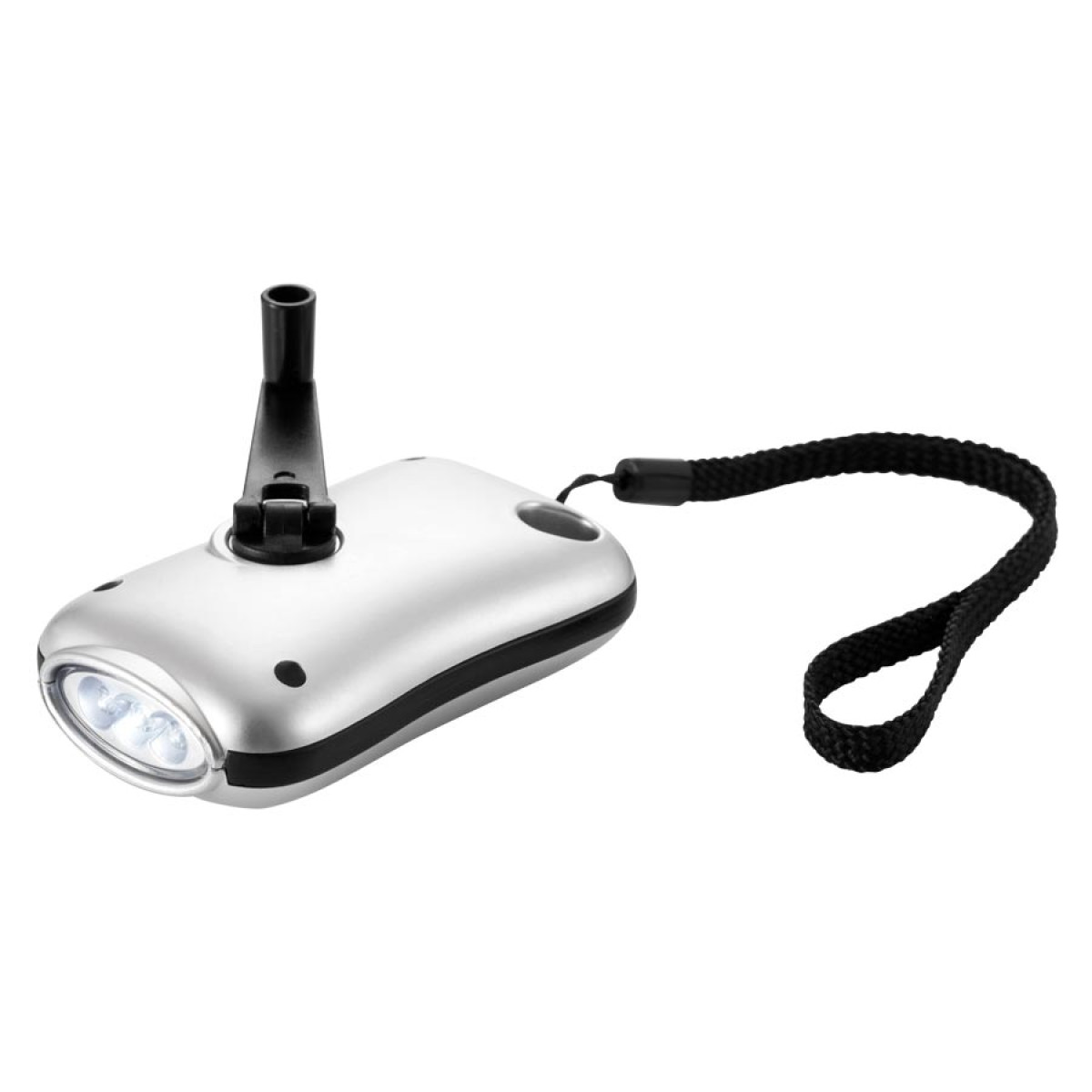 Linterna 3 LED con dínamo de manivela. Con huincha para colgar.
