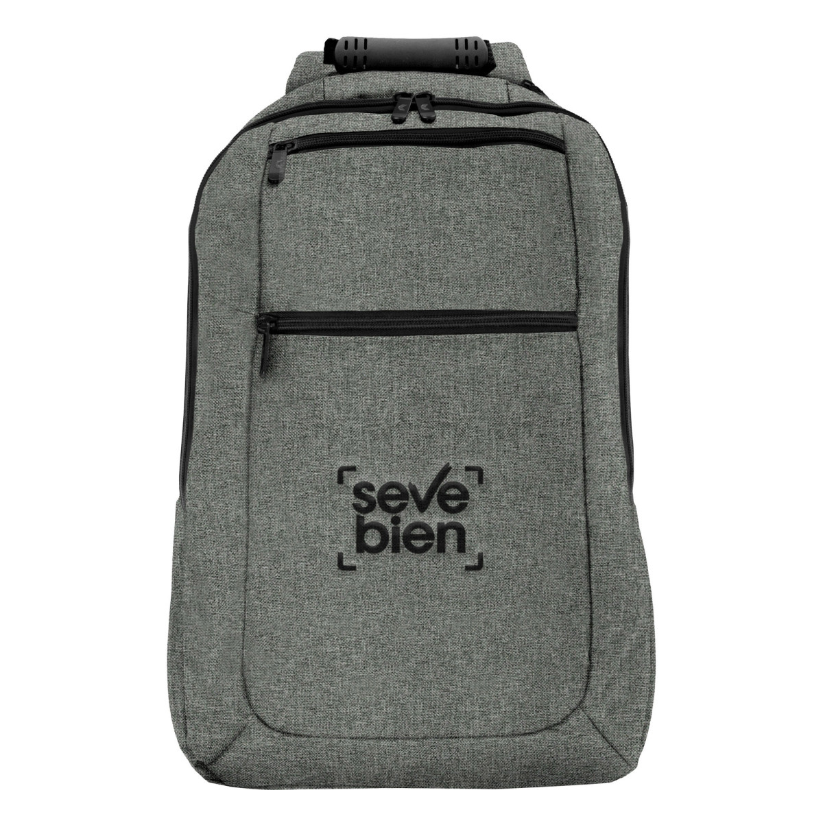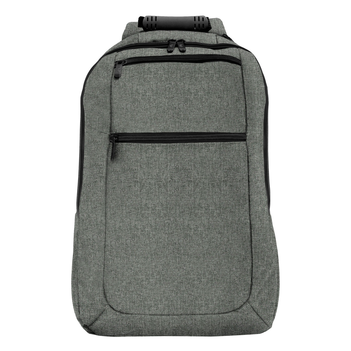 30 x 43 x 12 cm. Capacidad 14 litros. Poliéster 600D, interior poliéster 210D. Mochila portanotebook de 14 pulgadas. Compartimento lateral portanotebook, compartimento principal y 2 bolsillos frontales horizontales. Manija con refuerzo engomado, correas acolchadas, hebillas plásticas y cierres metálicos. Espalda acolchada. Tira para sujetar la mochila en la manija extensible de un equipaje de mano.