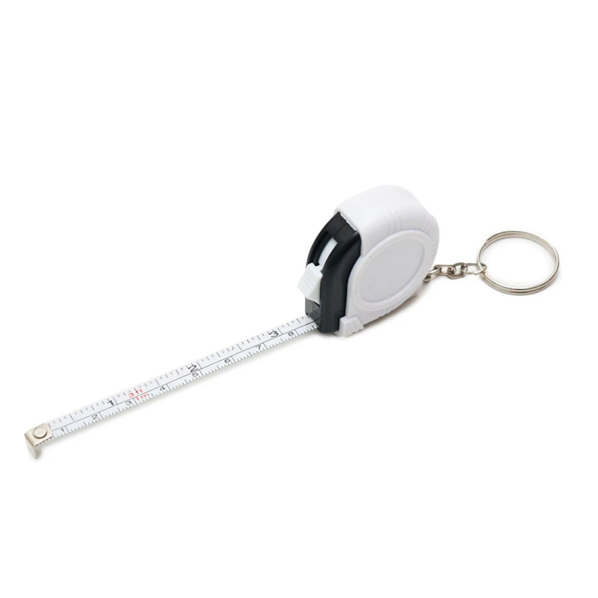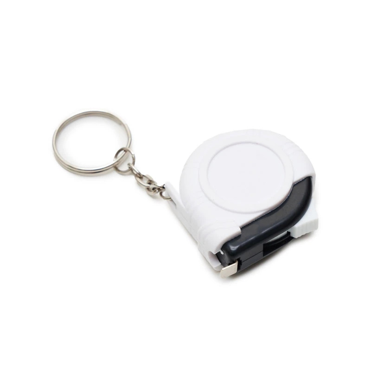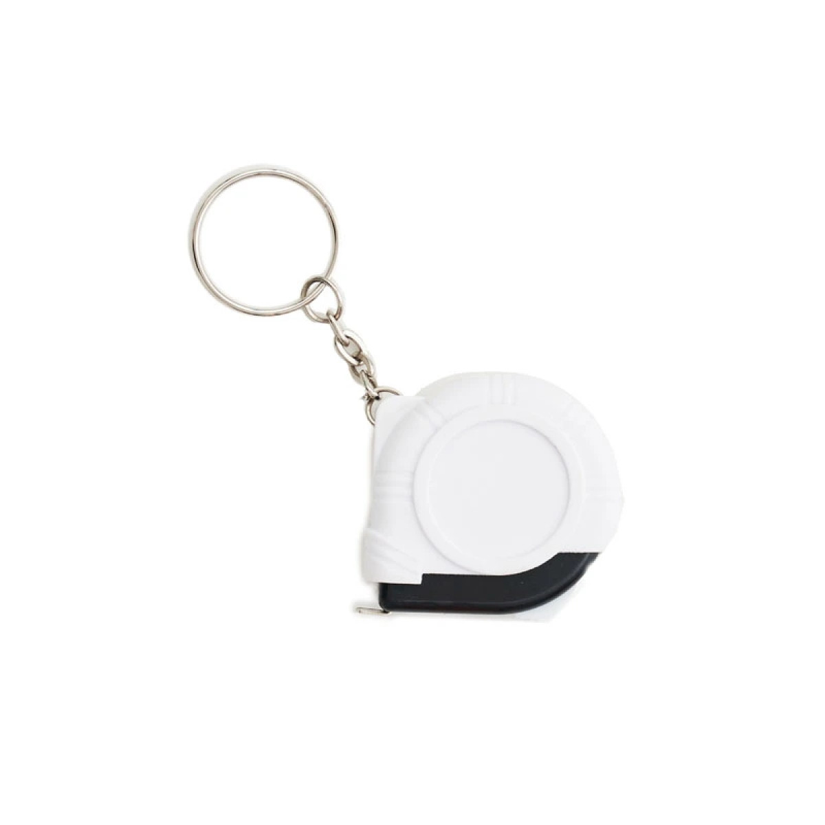 Llavero con cinta metrica retractil. Extensión: 1 metro. Medidas: 4,4 x 4,5 x 1,7 cm.