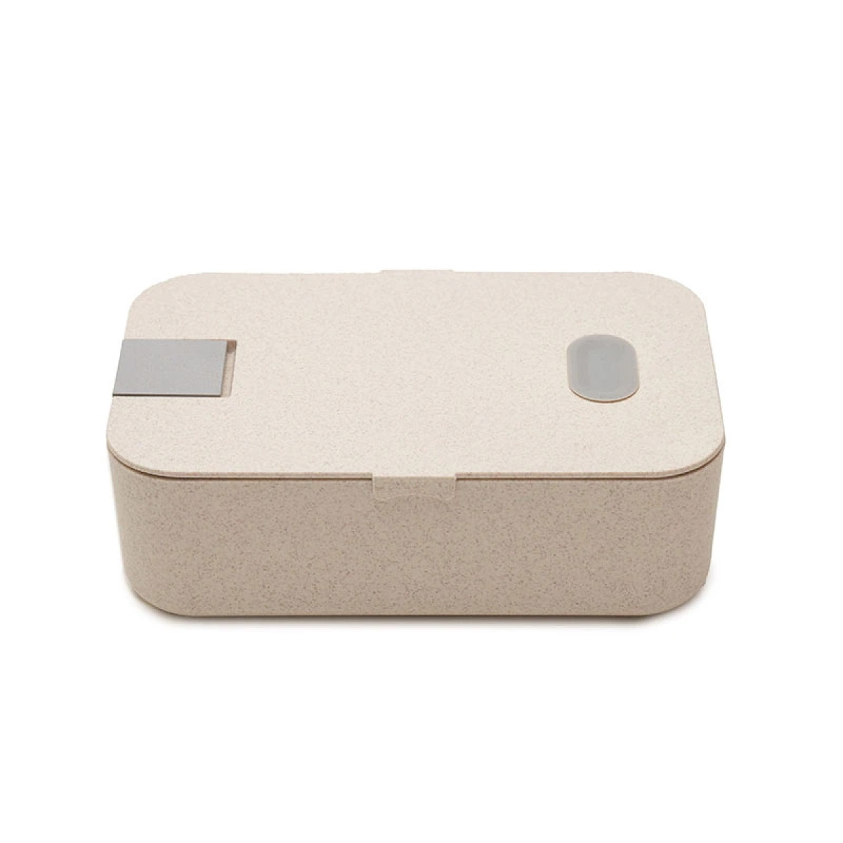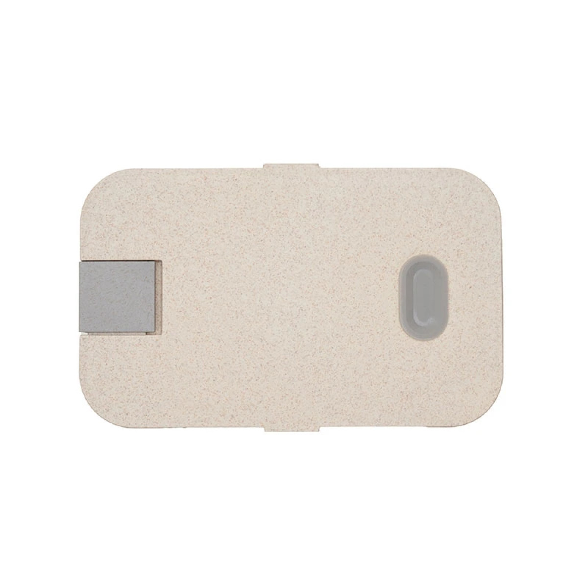 Contenedor de alimentos realizado en PP y Wheat Straw, pasta de tallo de trigo, un material sustentable que reduce el consumo de plásticos vírgenes. Incluye tenedor y panel divisor interno móvil, para colocar diferentes alimentos. Tapa con traba y espacio para apoyar tenedor.