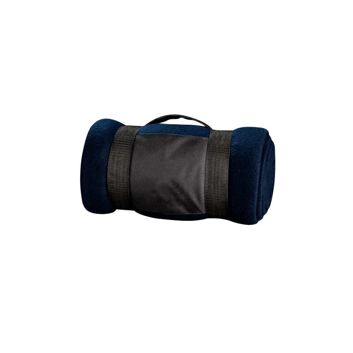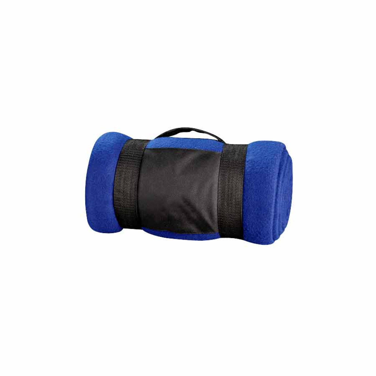 Manta de Polar Anti-peeling de 250 g/m2 con Costuras en todo el rededor, incluye bolsito de tela negra de transporte, con espacio para logo.