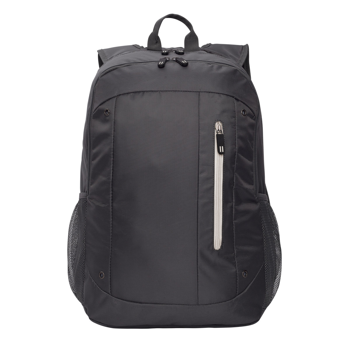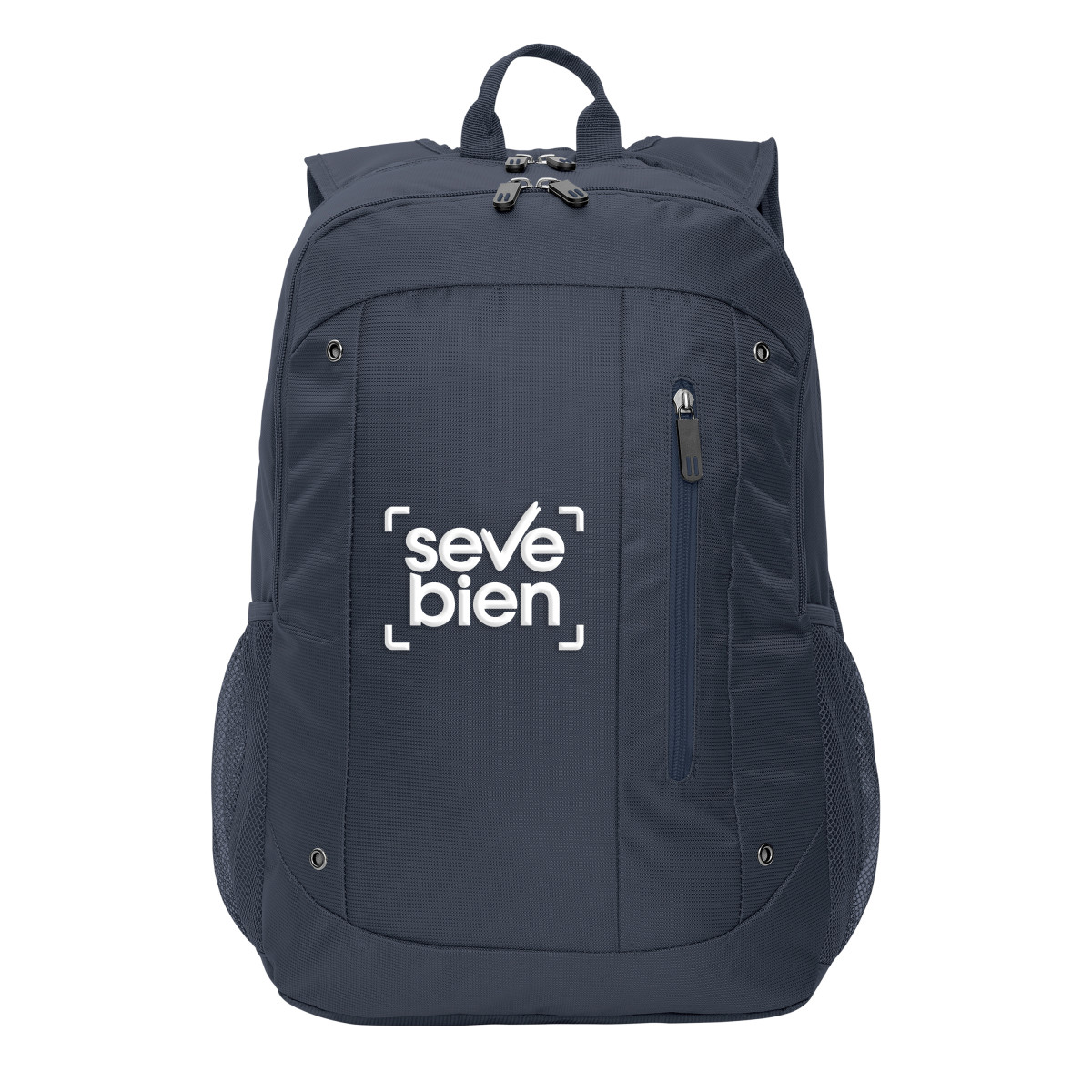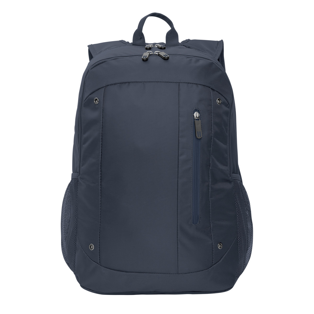 32 x 47 x 17 cm. Capacidad 25 litros aprox. Jacquard Poliéster 420D. Mochila portanotebook. Dos compartimentos con cierre. Compartimento principal con división acolchada porta notebook de hasta 15” con bolsillo y el segundo con tres espacios contenedores. Bolsillo frontal con cierre en color y dos bolsillos de red laterales. Cierres metálicos con tiradores de goma con detalles de color. Correas regulables y espalda acolchadas.