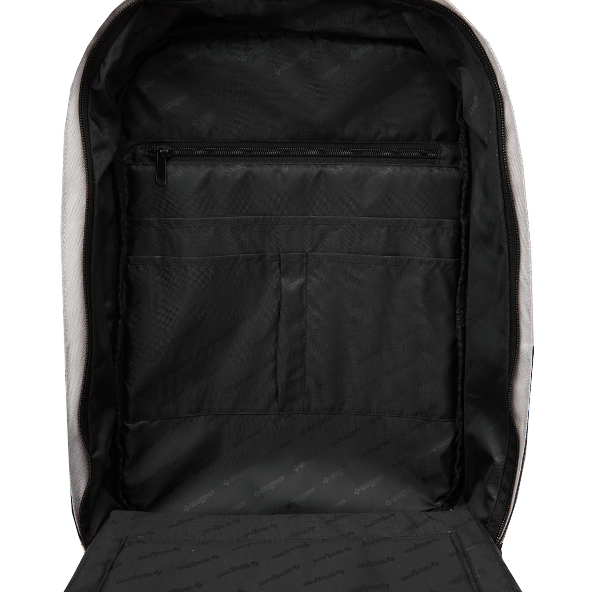 Mochila realizada en Poliester, con respaldo y correas acolchadas. El bolsillo principal con cierre es de apertura de 180°, tiene un espacio completamente acolchado para notebook y 5 bolsillos internos. Además, cuenta con un bolsillo con cierre, oculto en el respaldo para proteger objetos valiosos. Dimensiones: 29 x 8 x 43 cm. Capacidad: 10L. Notebook: 15,6". Wagner. LOGO24: Producto disponible para el servicio de logueo en 24 horas respetando unidades mínimas de logueo y 200 unidades máximas. Consultar términos y condiciones del servicio
