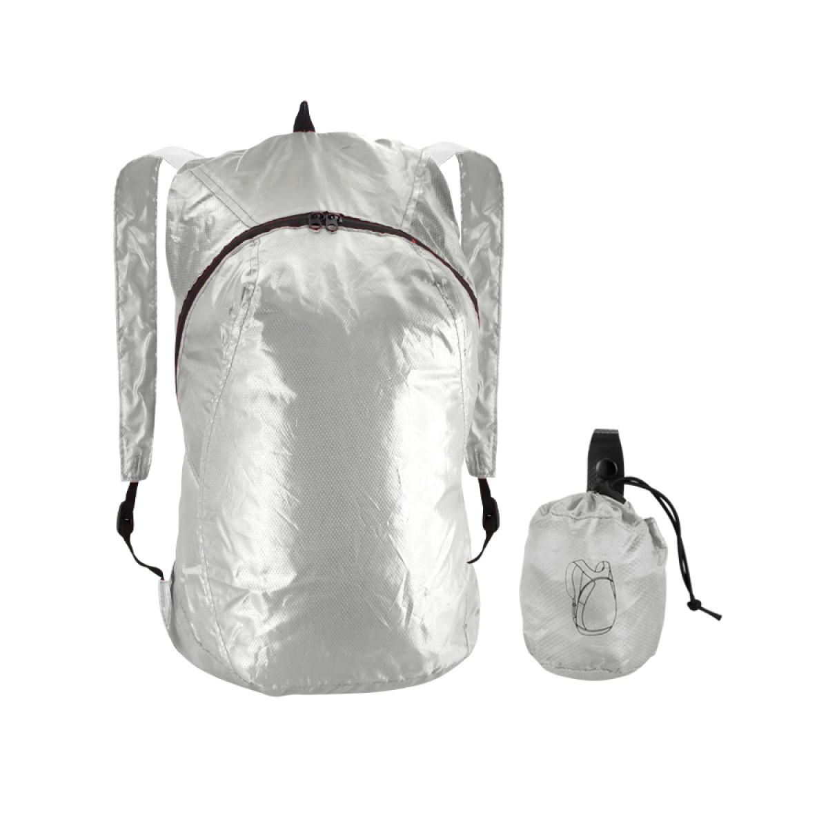 Mochila retráctil modelo "Capsule" de poliéster Ripstop 210D. Se retrae y se guarda en bolsillo interior, quedando de un tamaño cilíndrico compacto de 7 x 10 cm.