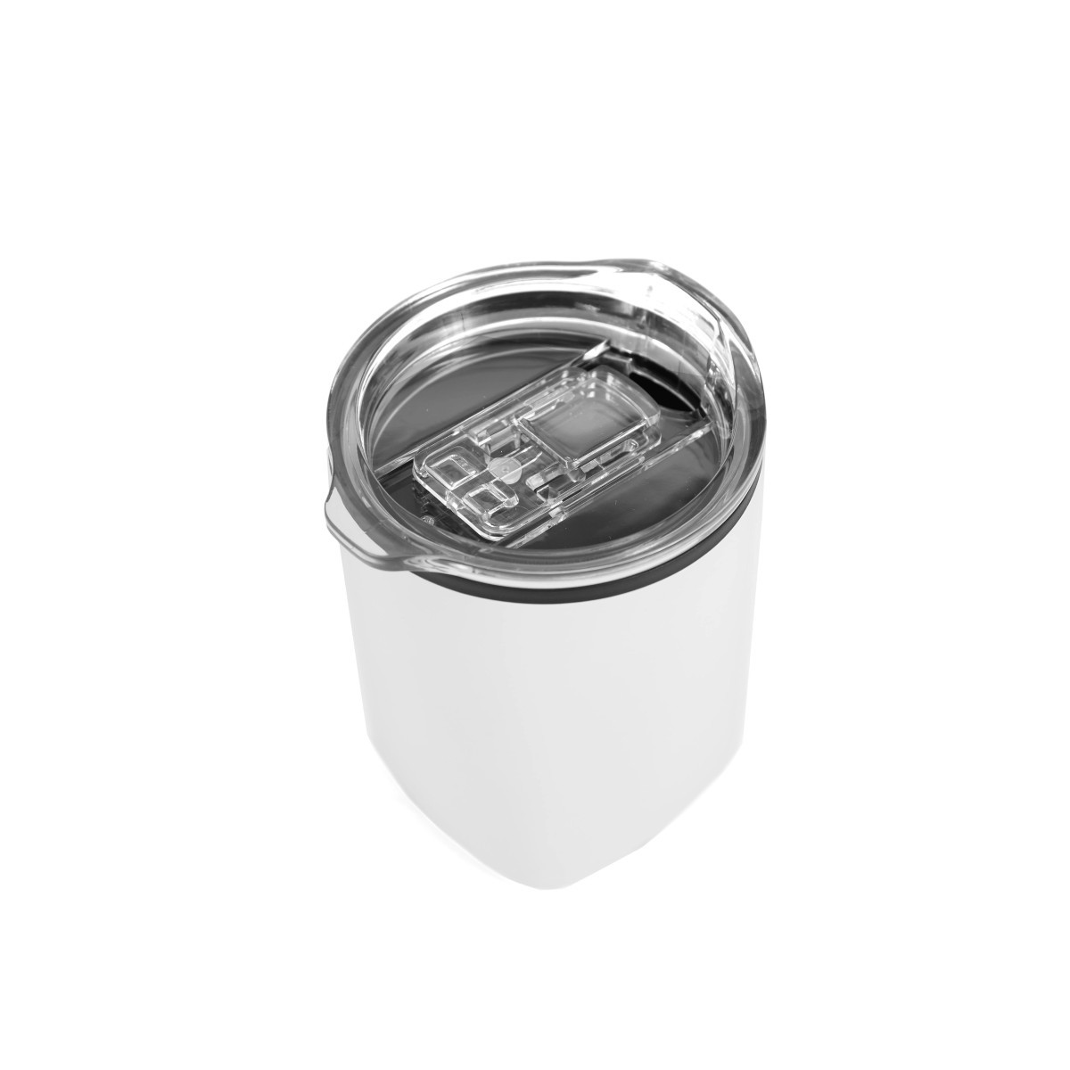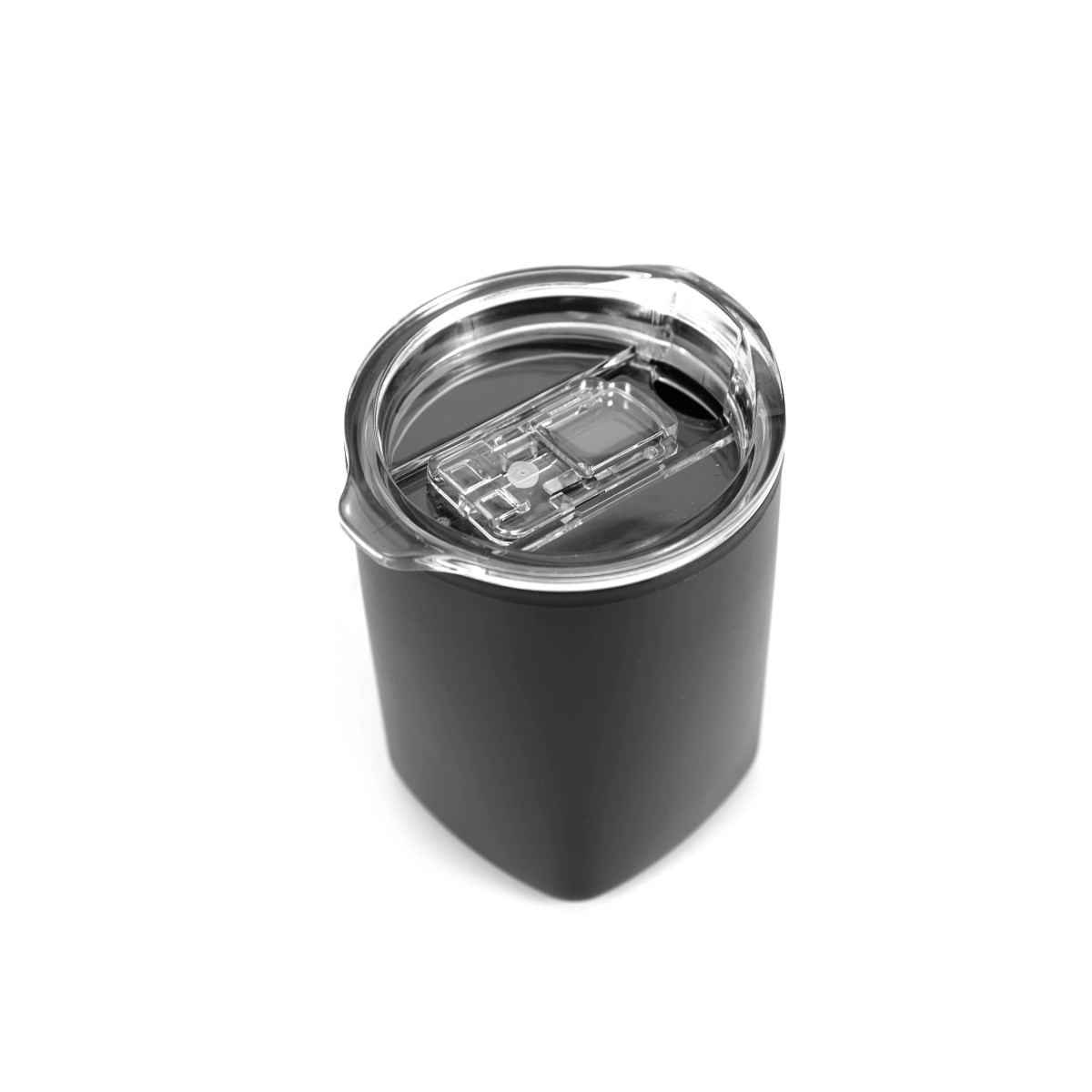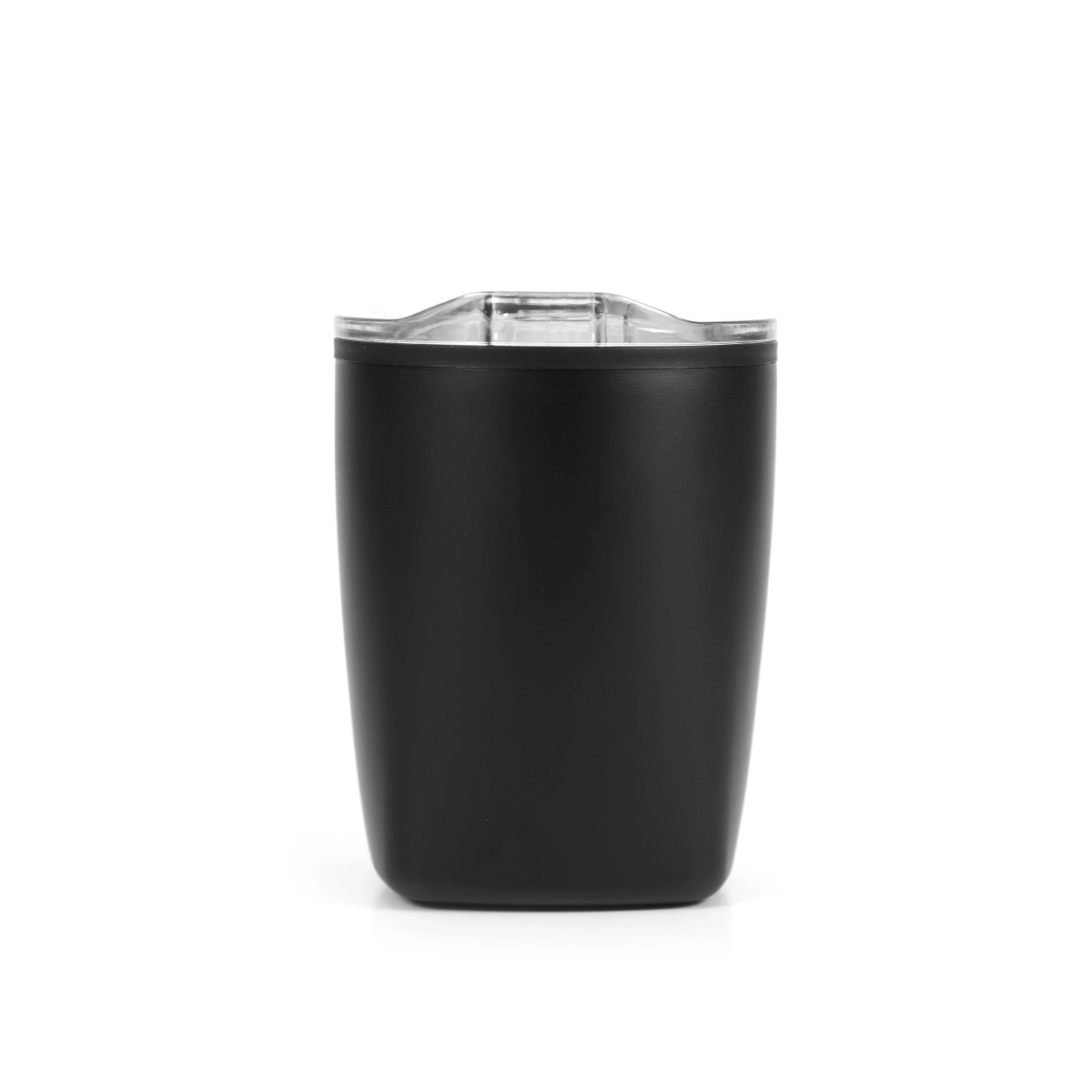Mug térmico realizado en acero inoxidable en su exterior, y polipropileno de color negro en su interior, con tapa transparente cristal clear con cierre y base antideslizante. Medidas: 11 cm x Diámetro 9 cm. Capacidad: 350 ml. LOGO24: Producto disponible para el servicio de logueo en 24 horas respetando unidades mínimas de logueo y 200 unidades máximas. Consultar términos y condiciones del servicio