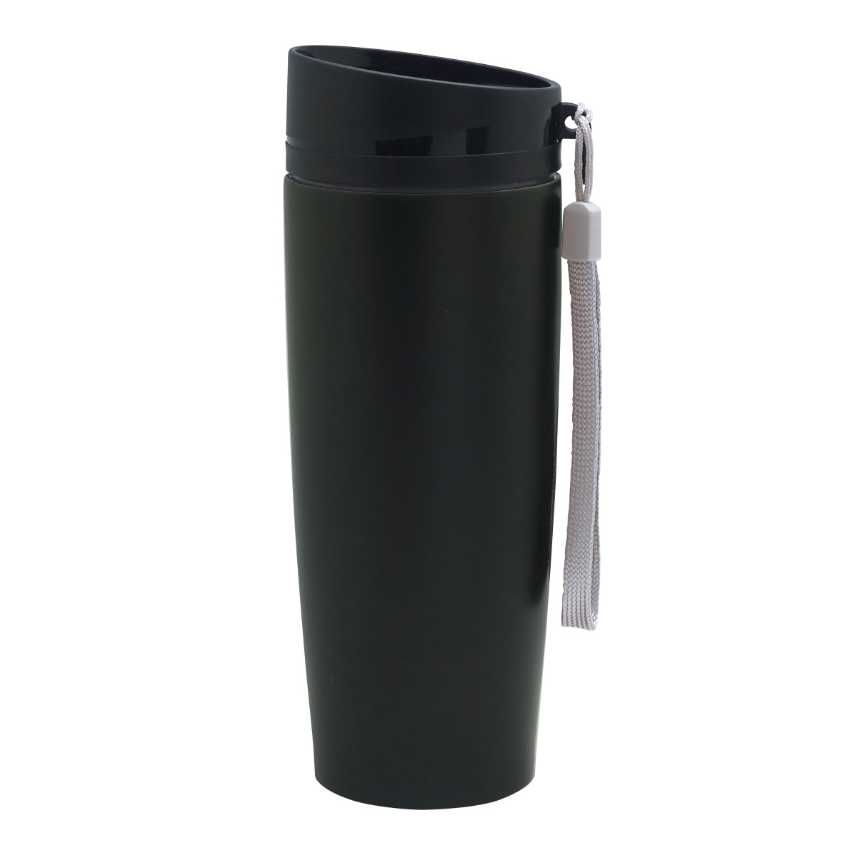 Ø 6 x 19,5 cm. Capacidad 350 ml. Acero inoxidable. Mug doble pared Interior acero 304 y exterior acero 201. Tapa a rosca, botón para abrir y cerrar. Lazo para sujetar en la muñeca. Base antideslizante. Mantiene las bebidas frías o calientes por más tiempo. Presentación en caja de regalo.