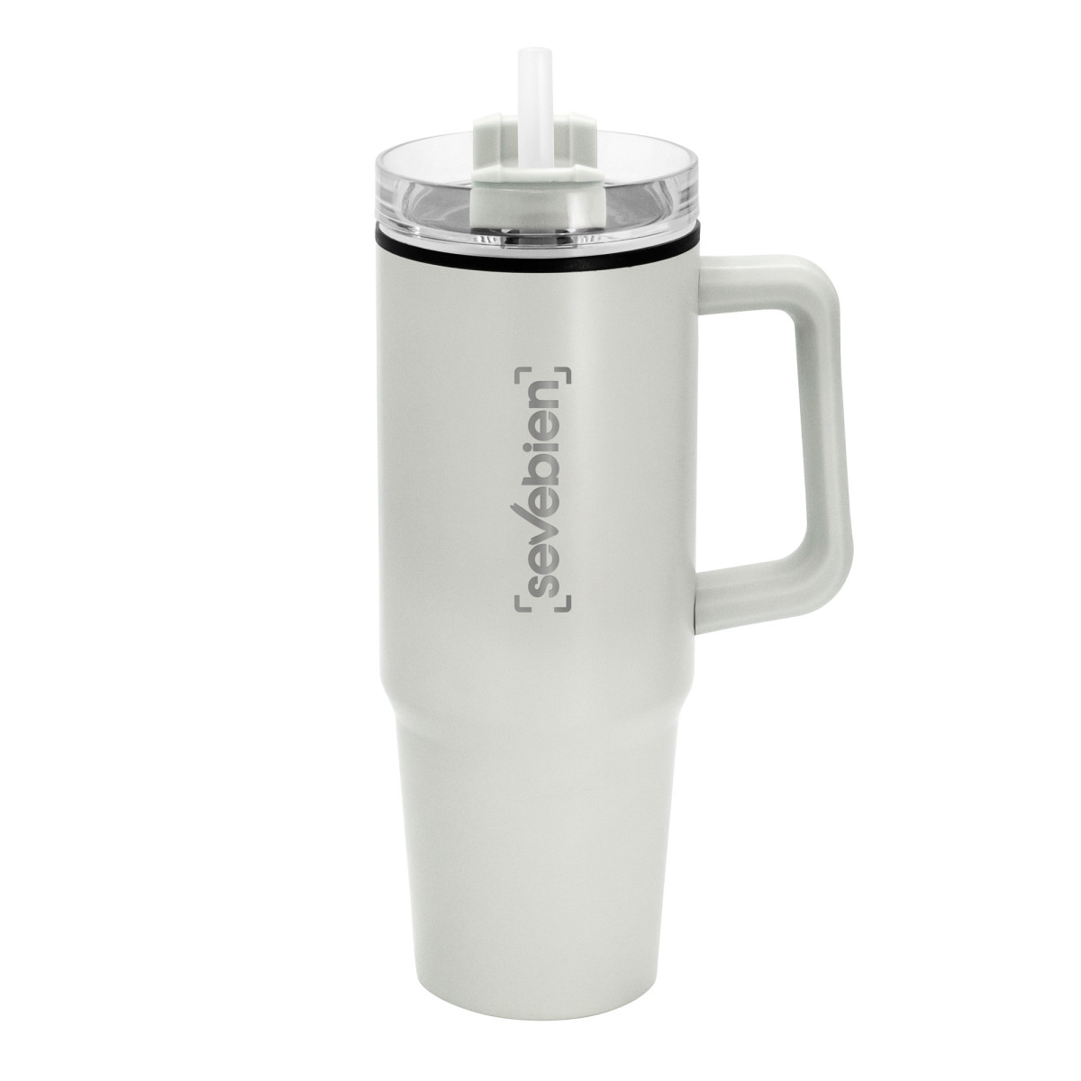 El acompañante ideal para cualquier ocasión. Mug doble pared con sorbete. Interior de plástico Polipropileno y exterior de acero 201. Tapa plástica transparente a rosca con anillo de silicona. Cierre giratorio porta sorbete. Sorbete plástico translucido. Pintura exterior con acabado mate. Mantiene las bebidas frías y calientes por más tiempo. Medidas: Ø 8,8 cm x 24 cm.
