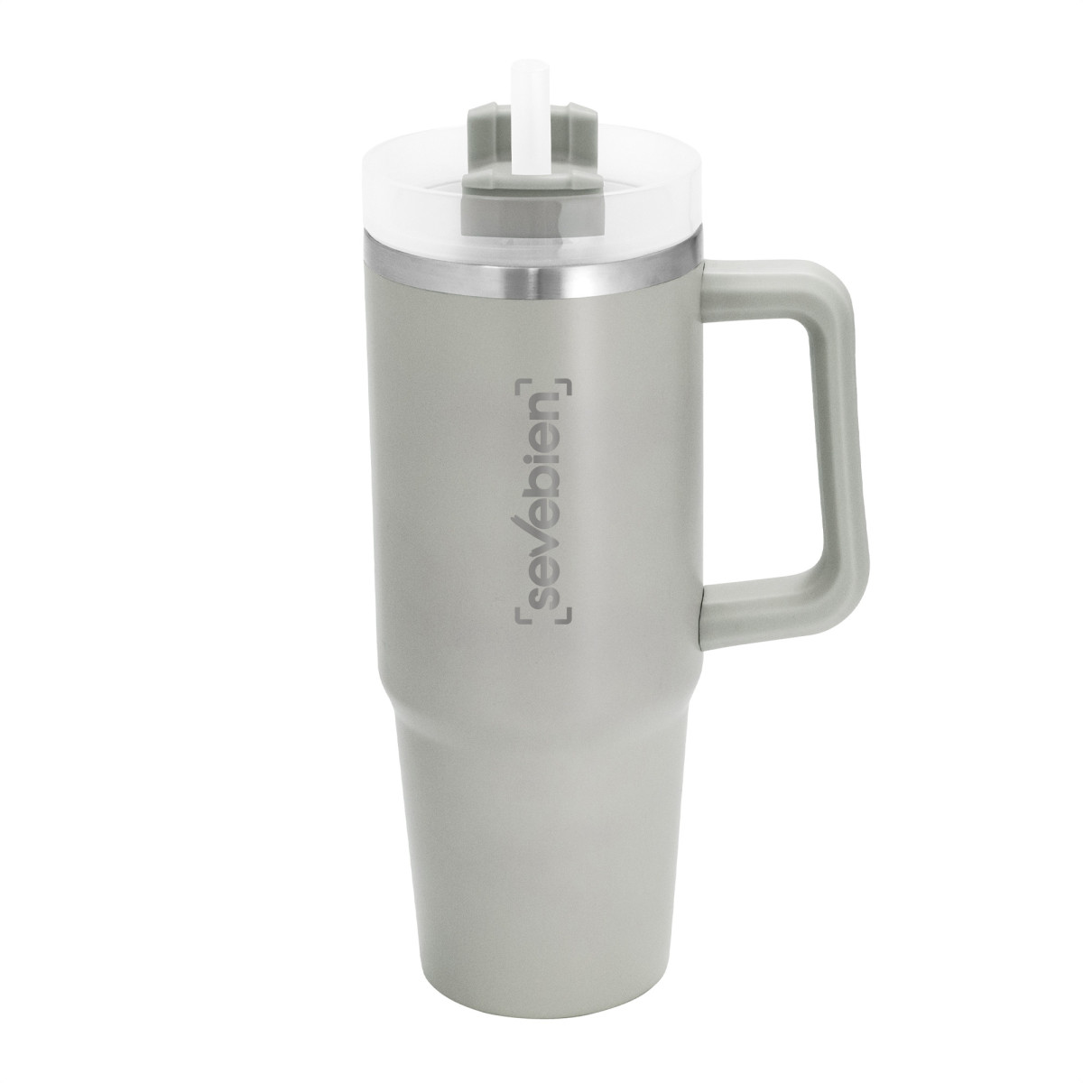 Diseño Térmico. El favorito de quienes nunca se detienen. Mug doble pared, sellado al vacío con sorbete. Tecnología Vacuum. Interior en acero 304 y exterior en acero 201. Tapa plástica transparente a rosca con anillo de silicona. Cierre giratorio porta sorbete. Sorbete plástico translucido. Pintura exterior con acabado mate. Mantiene hasta 12 hs la temperatura de las bebidas calientes y 24 hs de las bebidas frías. Medidas: Ø 8,8 cm x 24 cm.
