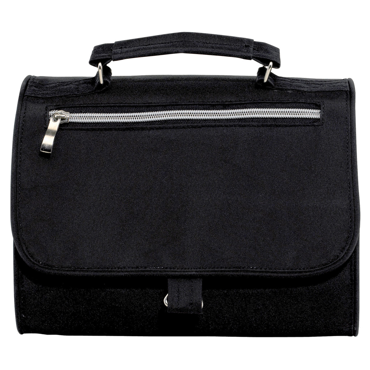 25 x 8 x 18 cm cerrado / 25 x 59 cm abierto. Polyester 600D. Colgante. Con cierre, 3 compartimentos interiores, 1 compartimento exterior en la parte frontal con cierre.