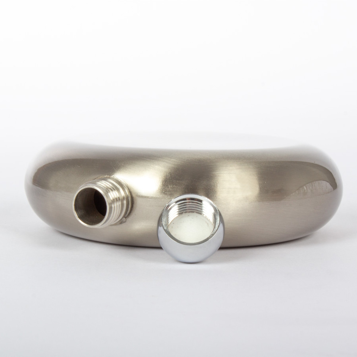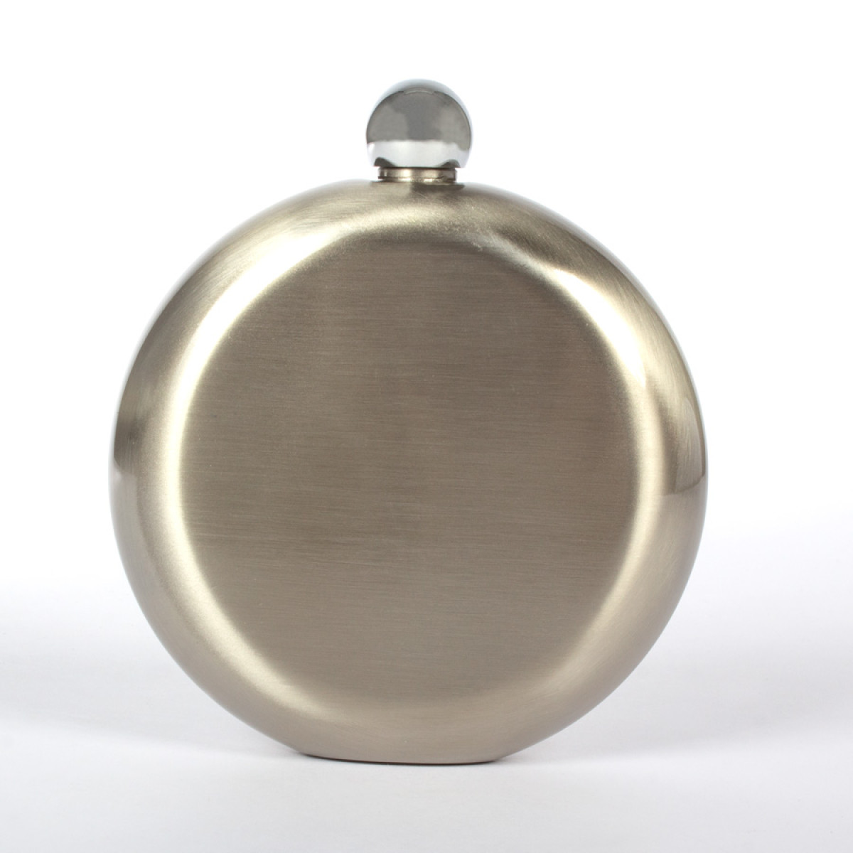 Licorera (Petaca) redonda de Acero Inoxidable con tapa redonda, para Sublimación. Capacidad 300cc (10oz). Presentación en bolsa PP translúcida + estuche de cartulina blanca.