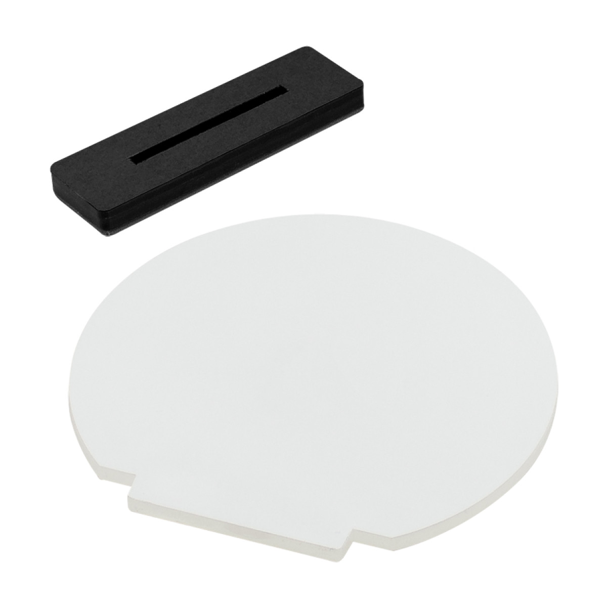Porta-Retrato redondo para Sublimación. Base plástico negro. Porta-Foto de Acrílico frozen de 13 x 12.5 x 0.4 cm. Presentación en Bolsa plástica.