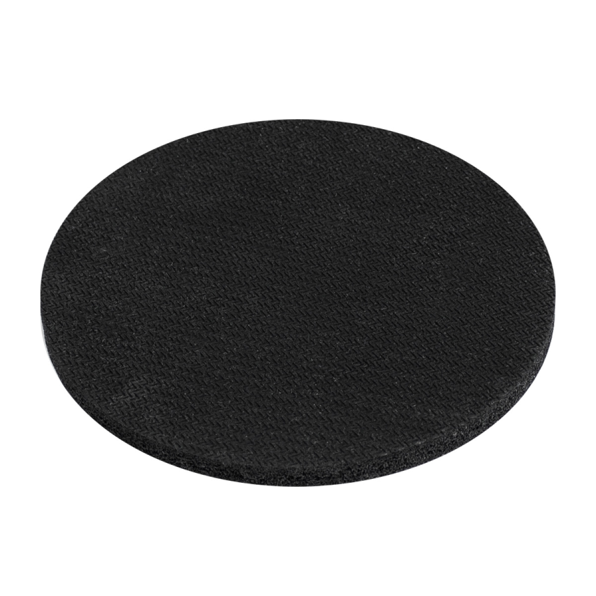 Posavaso redondo de 5mm de espesor y 9cm. de diámetro, con base de silicona negra y cubierta de tela blanca para Sublimación.