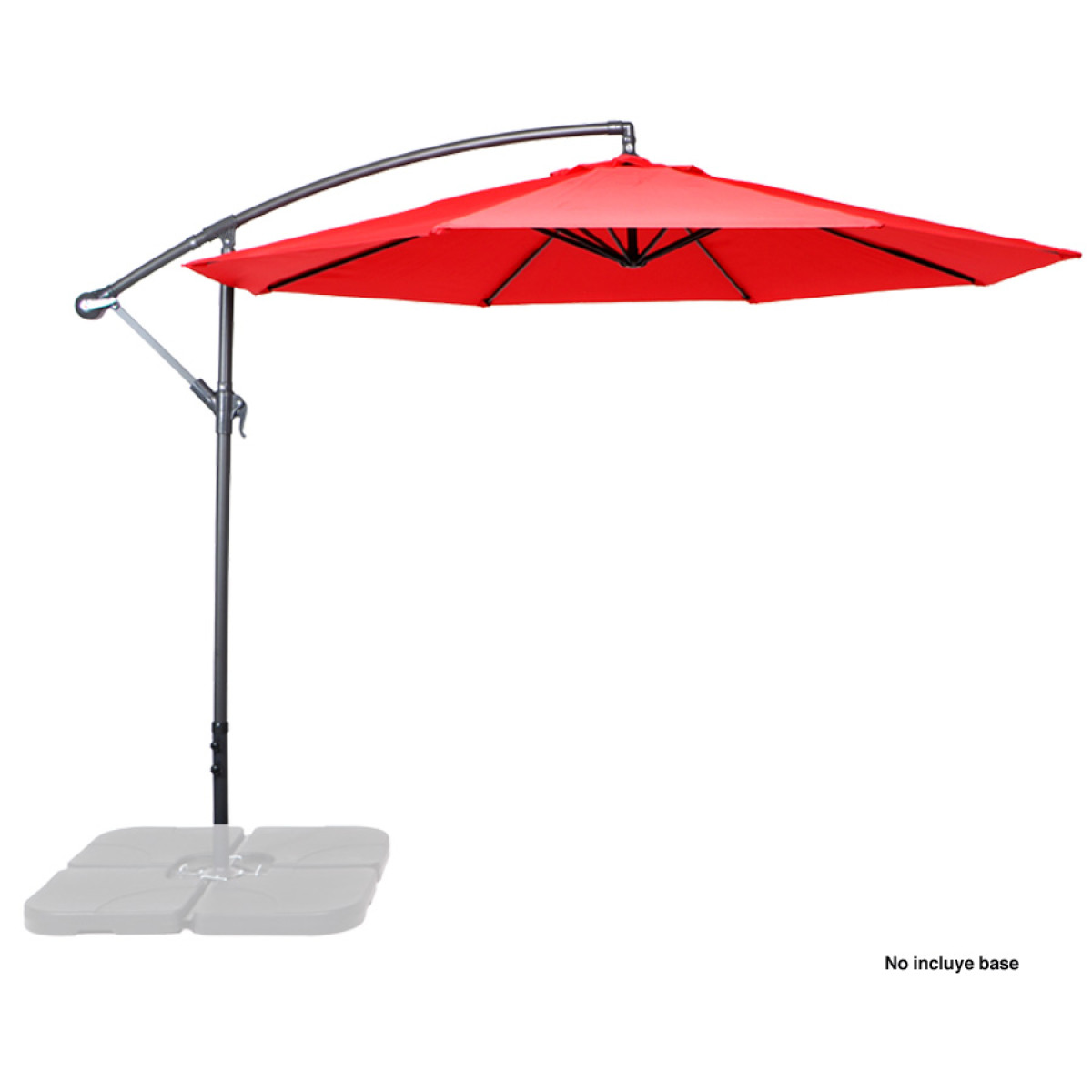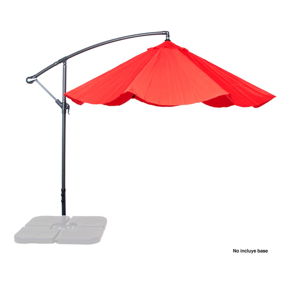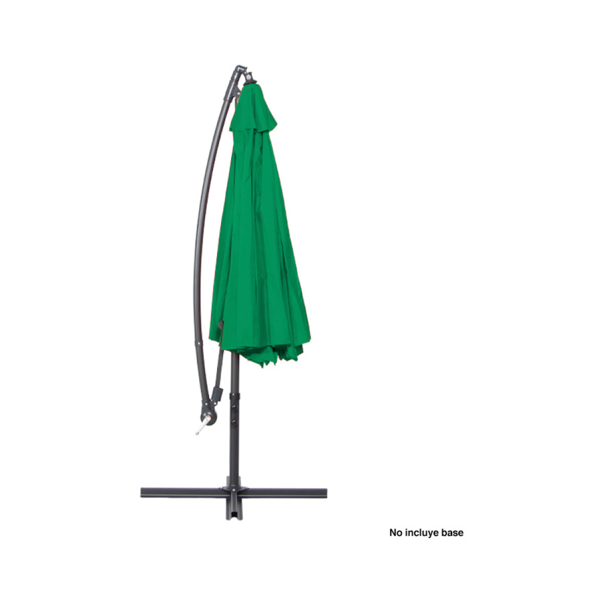 Quitasol colgante redondo de Ø3m, modelo "Banana", con 8 cascos de lona Poliéster UV impermeable de 160g. Contiene varas reforzadas de Acero recubierto de 12 x 18mm, asta de Acero recubierto de 48mm, sistema de apertura manual.