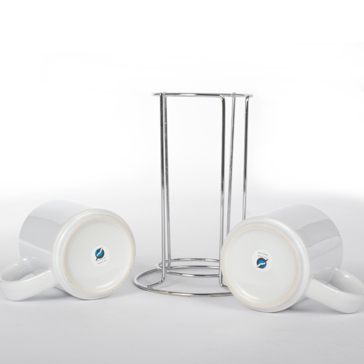 Set de 2 tazones cerámicos para Sublimación, en contenedor de Acero Inoxidable. Calidad superior "ORCA". Capacidad de cada Tazón: 250cc. Presentación en bolsa PP translúcido + estuche de cartón blanco.