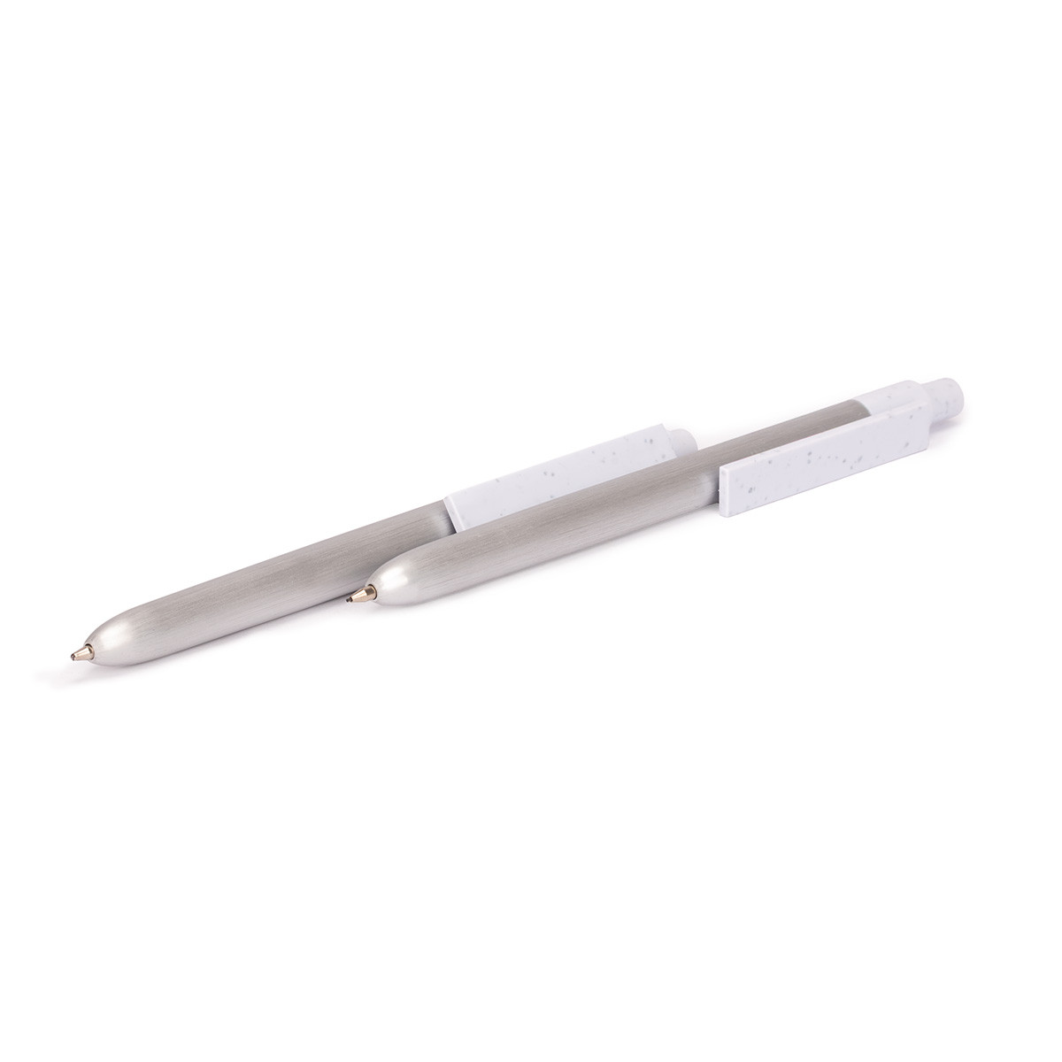 ANAPOIMA reúne lo esencial del diseño ejecutivo con una mirada comprometida con el planeta. Este set incluye bolígrafo y portaminas fabricados en aluminio reciclado, con cuerpo plateado y detalles en fibra de trigo que aportan un contraste natural. Empacado en una caja negra elegante, ANAPOIMA es una excelente alternativa para transmitir sofisticación sin exceso, y ligereza sin descuido ambiental. Tu marca cobrará fuerza al asociarse con herramientas que reflejan precisión, estilo y responsabilidad en cada detalle.
