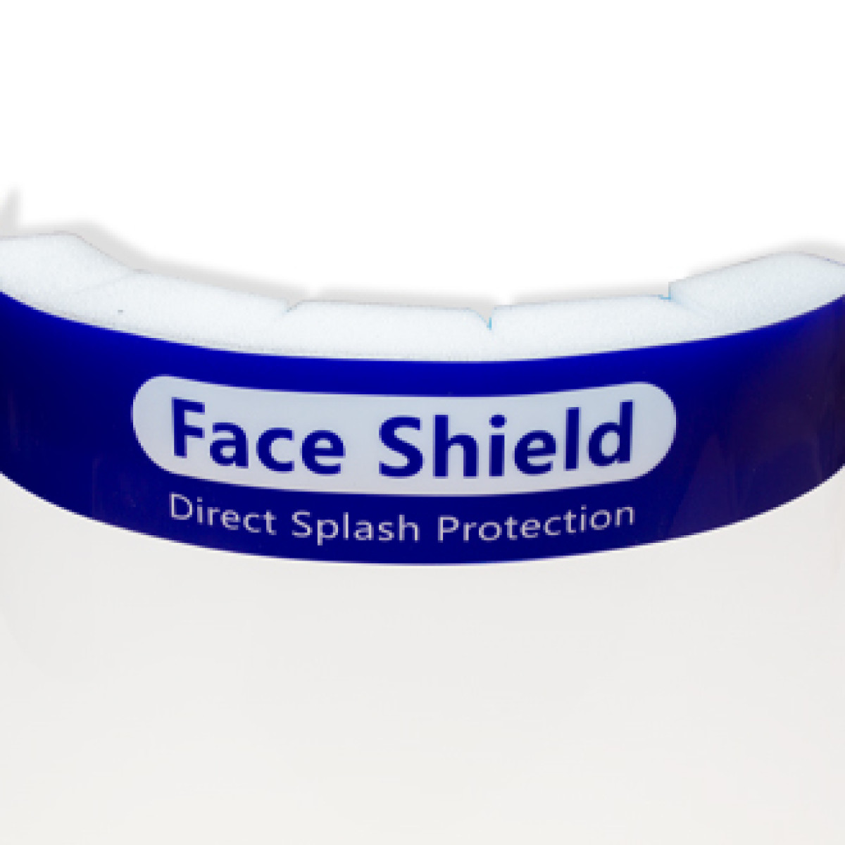 Set (Bolsa) de 10 Face Shield - Escudo Protector Facial de mica plástica transparente para la protección de transmisión de partículas por vía aérea. Incluye esponja para la frente y banda elástica. Fácil y cómoda de usar.