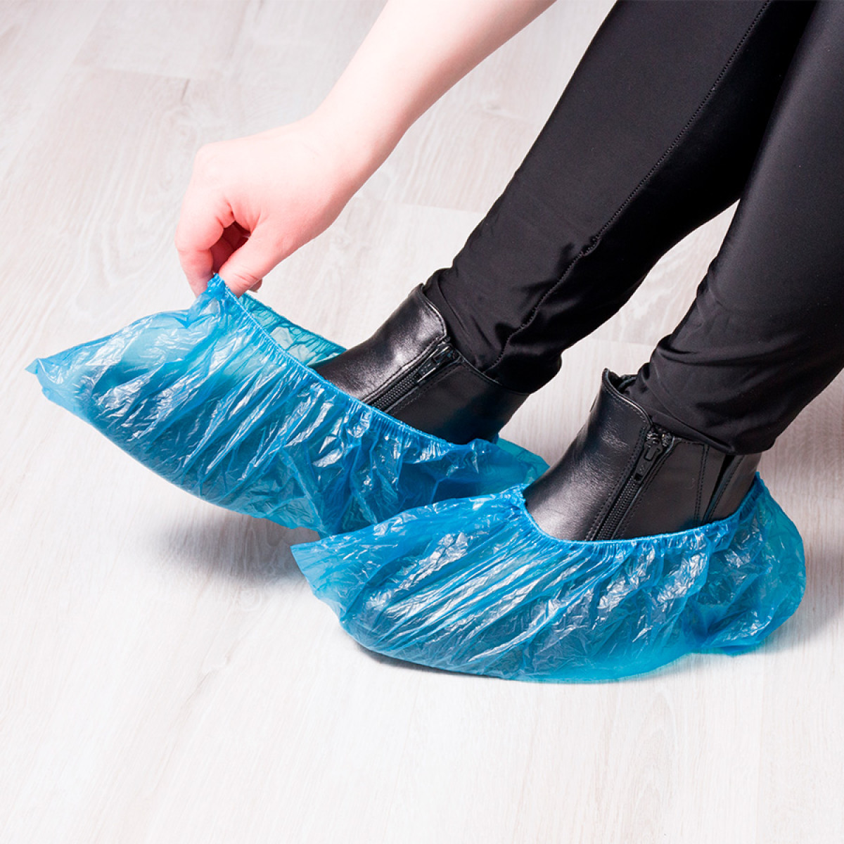 Set de 100 bolsas Cubre-Calzado azul de plástico PE. Unidad mínima de venta, bolsa de 100 unidades.