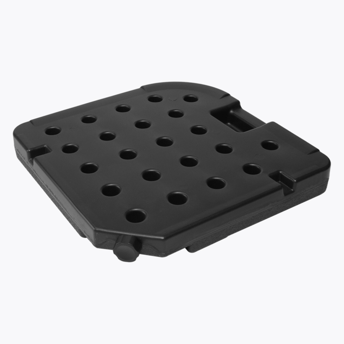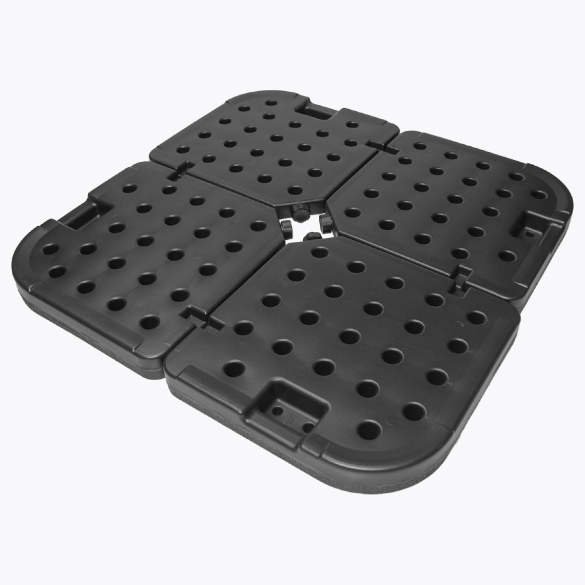 Set de 4 bases plásticas cuadradas rellenables (con arena o piedrecilla, para darle mayor peso), con una capacidad total de 60kg