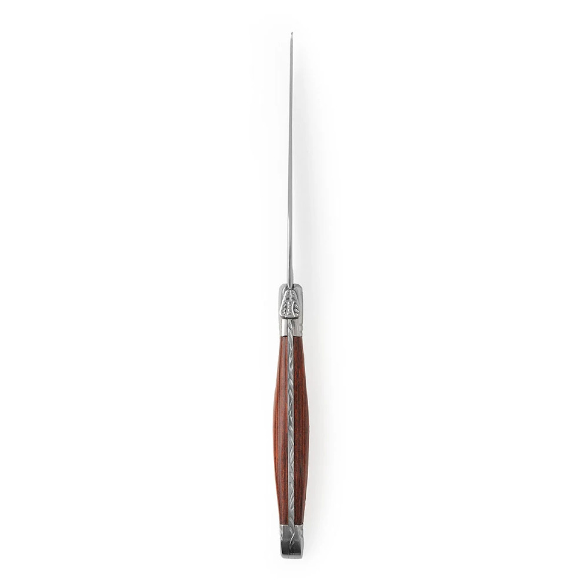 Set de cubiertos para 4 personas de diseño francés. Piezas con hojas de acero forjado 420 y mango de madera noble con detalles metálicos. La Caja de madera negra contiene: 4 tenedores, 4 cuchillos, 4 cucharas soperas, 4 cucharas de té. Medidas de la caja: 25,8 x 35 x 7 cm. Producto libre de BPA. Laguiole.