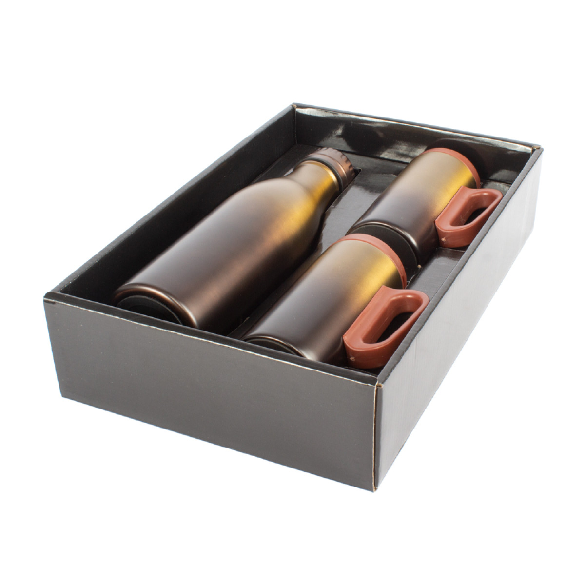 Set de 2 tazones 250cc. + termo 500cc, de Acero Inoxidable, en caja de cartón color negro.