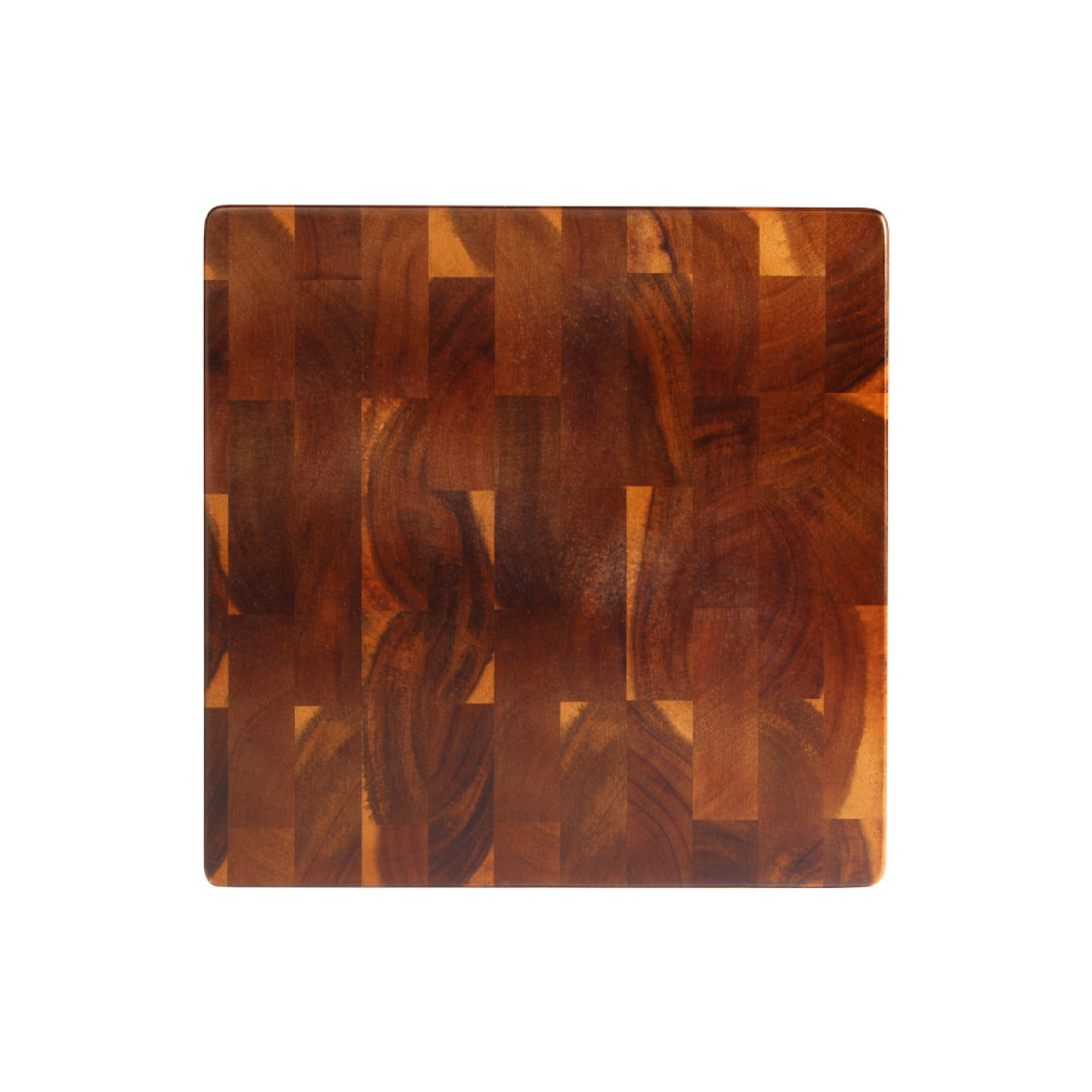 Fina tabla cuadrada de madera sólida de ACACIA con piezas integradas, diseño único para sorprender! Ideal para cortar y/o servir verduras, quesos, frutos secos o picoteo. Madera trabajada y acabada en máquina, de forma 100% regular, con superficies, laterales y cantos suaves y redondeados, para una mayor higiene y comodidad al momento de cortar y servir alimentos. La Acacia, junto con la Teca, es considerada la mejor, más dura y más resistente madera para utilizar para cortes de alimentos - Densidad aprox. 770kg/m3. - Dureza 9.5 (test de Monnin)