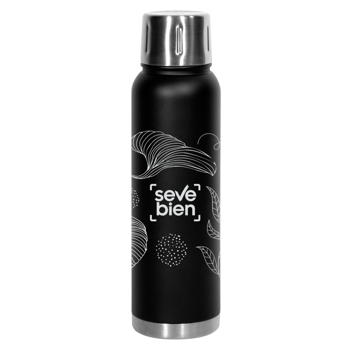 Ø 8,4 x 30 cm. Capacidad 1000 ml. Acero inoxidable. Termo Doble pared con recubrimiento de cobre. Interior en acero 304 y exterior en acero 201. Pintura Powder Coat (pintura mas duradera y resistente a la corrosión y el paso del tiempo). Tapa de acero a rosca. Tapón con apertura y cierre a presión. Mantiene por más de 12 hs la temperatura de las bebidas calientes y 24 hs de las bebidas frías. Presentación en caja de regalo.