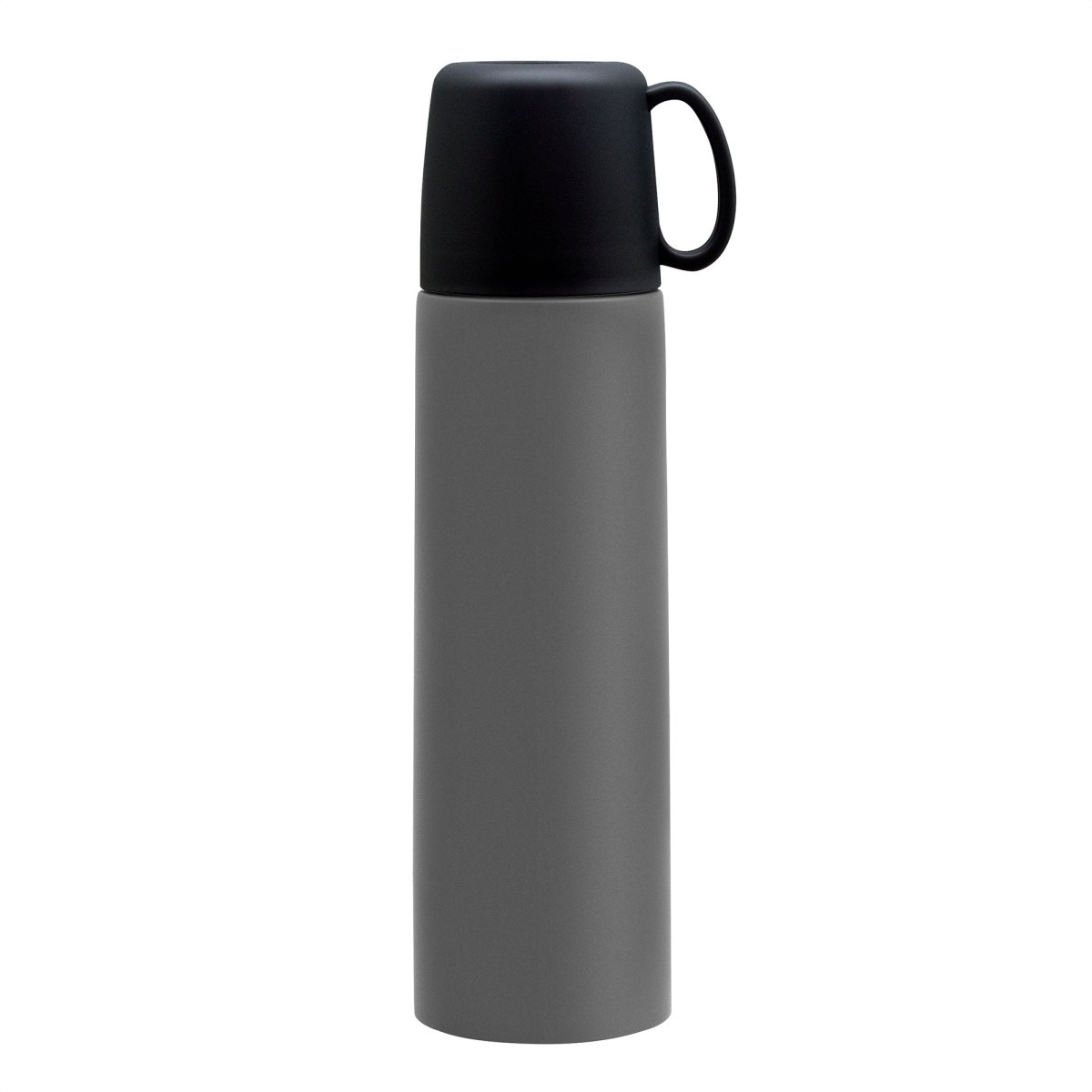 8,1 x 6,8 x 25 cm. Capacidad 500 ml. Acero inoxidable y Polipropileno. Termo con doble pared sellado al vacío. Acero inoxidable 304 interior / 201 exterior. Tapa y taza plásticas en color negro. Pintura acabado mate. Mantiene hasta 12 hs la temperatura de las bebidas calientes y 24 hs de las bebidas frías. Presentación en caja de regalo Kraft.