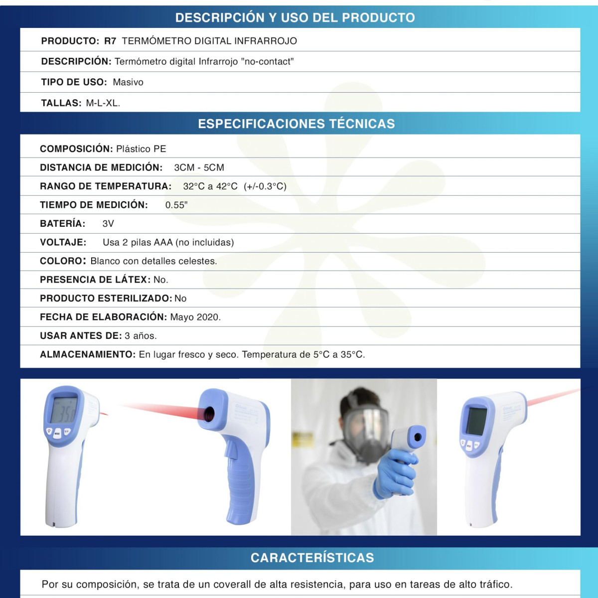 Termómetro digital Infrarrojo "no-contact", distancia de medición 3CM-5CM, tiempo de medición 0.55"