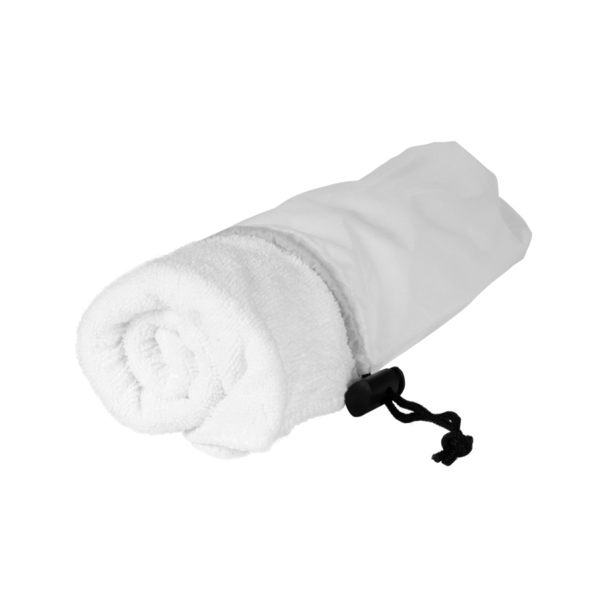 Toalla deportiva en tela Microfibra para Sublimación. Presentación dentro de bolsito de nylon 190D/PU.