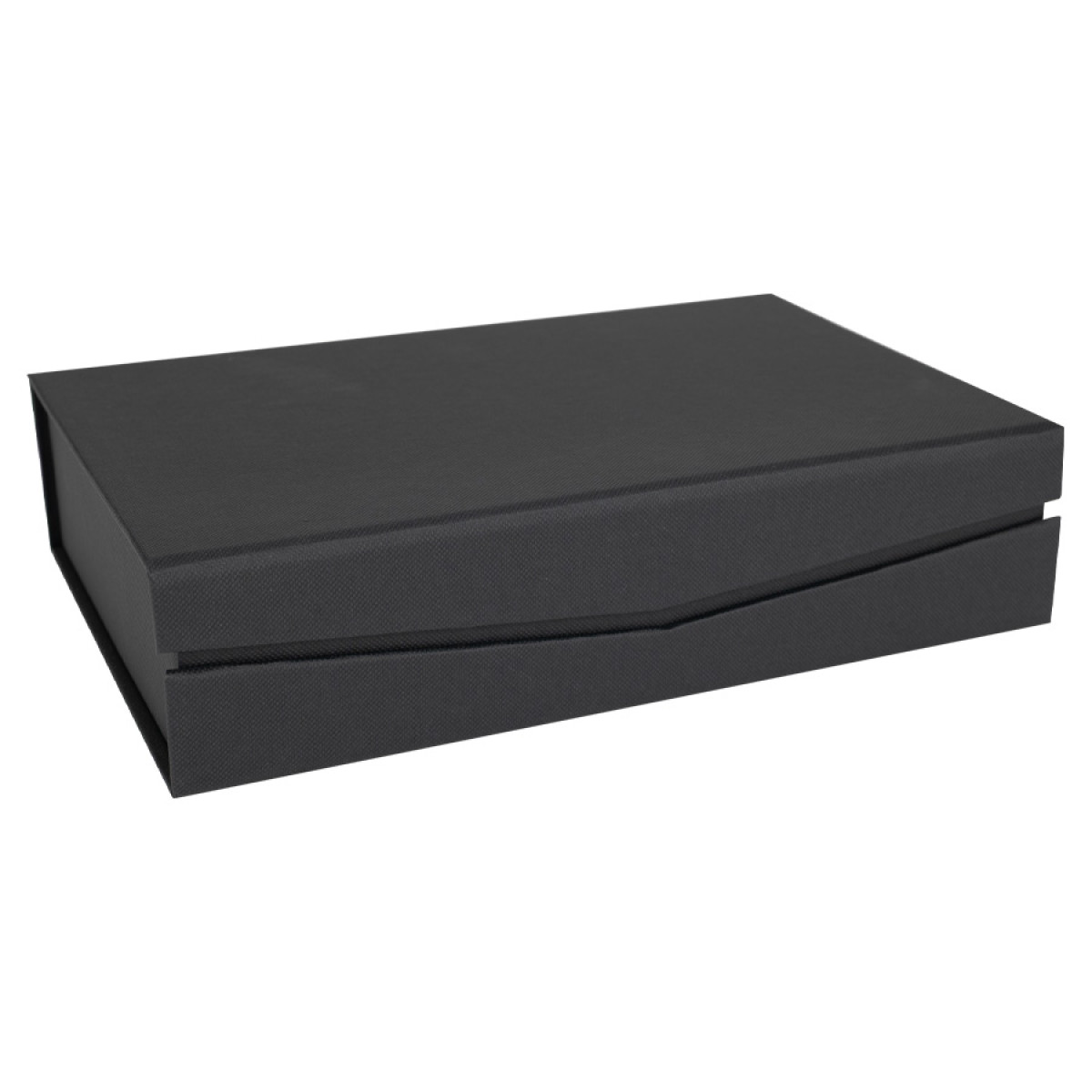 Elegante Trofeo Galvano de Cristal modelo "Tear", con base de cristal negro. Presentación en caja de cartón forrado negro con cierre imantado, interior acolchado de espuma y tela poliéster satinado negro, con troquel.