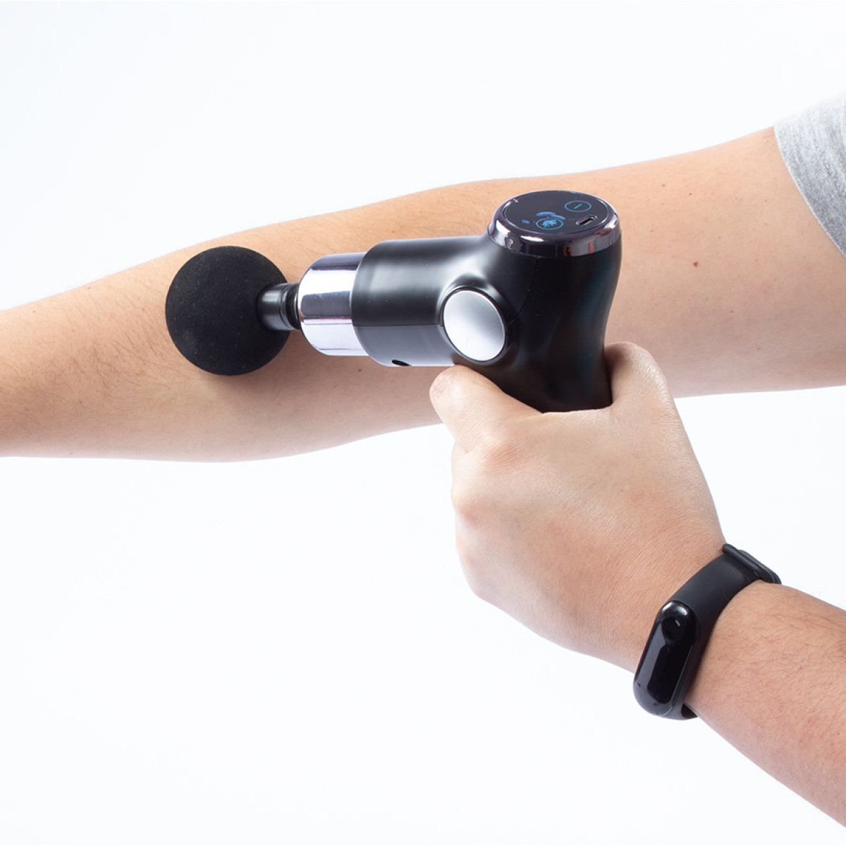 USB Masajeador con 4 cabezales intercambiables. Incluye cable cargador USB/TYPE C. Diferentes velocidades de uso. Tiempo de uso con batería 100% cargada, 2 horas aprox. Presentación en estuche de regalo de cartón corrugado negro