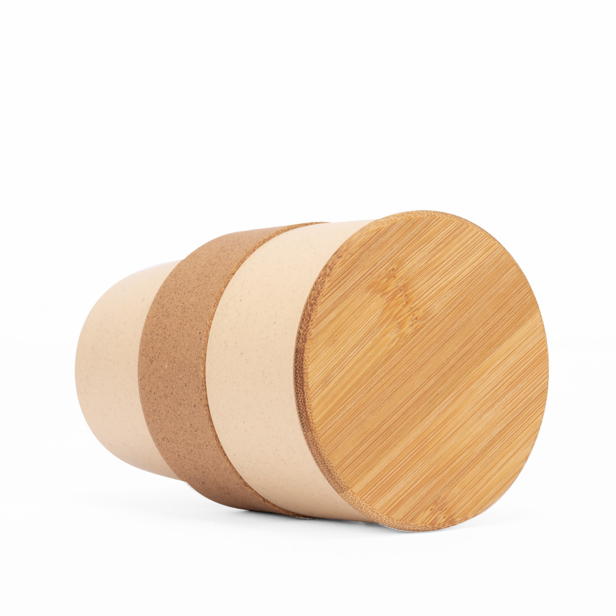 ISLAY es un vaso reutilizable de 375 ml que fusiona naturaleza y funcionalidad. Fabricado en fibra de trigo con tapa de bambú y grip de corcho natural, su diseño ergonómico y cálido lo convierte en un aliado perfecto para bebidas calientes, tanto en casa como en movimiento. Más allá de su estética minimalista, ISLAY representa una declaración sobre el uso consciente de materiales renovables y reciclables. Personaliza este vaso con tu marca y acompaña cada sorbo con un mensaje claro: elegir bien también se ve y se siente bien.